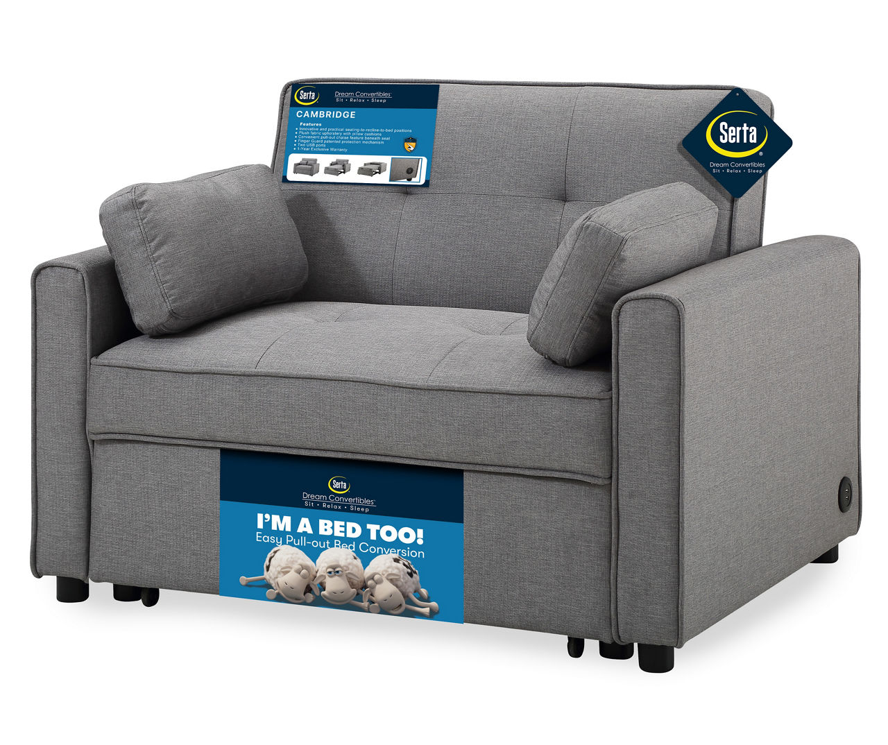 Serta Cambridge Gray Twin Convertible Sleeper Sofa Big Lots